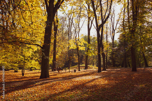 Dywany z liści jesiennych, kolorowych, polska złota jesień