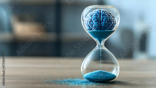 A creative hourglass with a brain design symbolizes the passage of time and intelligence, perfect for conceptual projects.