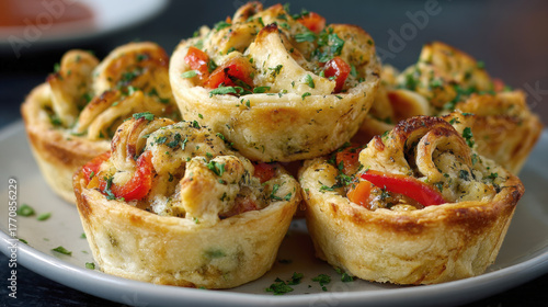 Gourmet Savory Monkey Bread or Pull-Apart Muffins Stuffed with Chicken, Roasted Red Peppers, and Herbs, Baked in Golden Crusts and Piled High for an Appetizing Snack or Party Food
