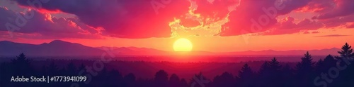 Vibrant sunset paints the clear sky with bold oranges, pinks, and purples A breathtaking display of natural color at twilight , hue, pink