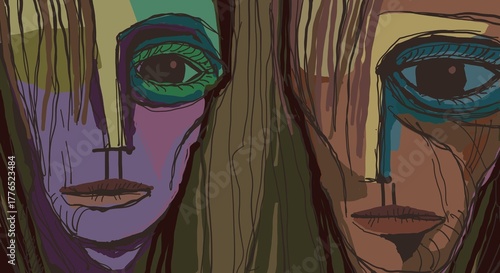 Abstract face. Abstract image for printing. Picture for modern interiors. The picture is painted by hand on a tablet.