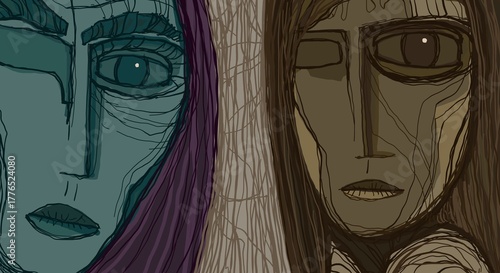 Abstract face. Abstract image for printing. Picture for modern interiors. The picture is painted by hand on a tablet.