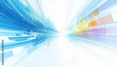 放射状に展開する色と光の線が印象的な躍動感のある抽象的グラフィック背景