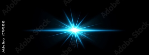 Bright Blue Starburst Light Effect on Black Background flare explosion