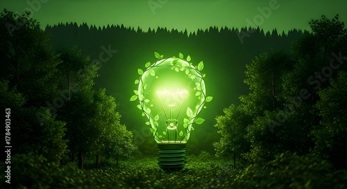 sustainable energy light bulb in forest