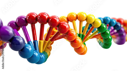 DNA strand in rainbow colors: A vibrant and colorful depiction of a DNA strand, rendered in a spectrum of rainbow hues, illustrating the core of life and scientific marvel.