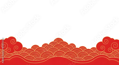 Elegant red and gold chinese new year background with traditional cloud and wave patterns isolated on white background for festive celebrations and cultural designs
