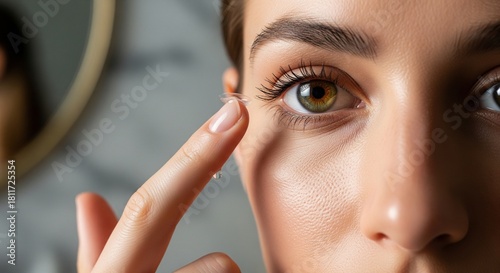 Eye care and beauty: applying contact lens close up