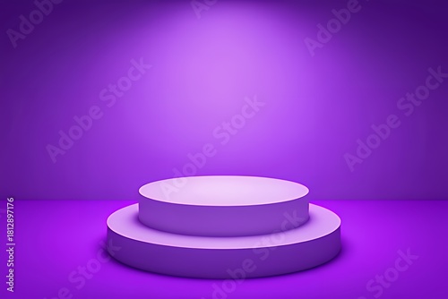 Purple podium background or product display platform, vector stage scene. Studio podium or show pedestal in violet purple pastel light, product display stand with wall, showcase room platform
