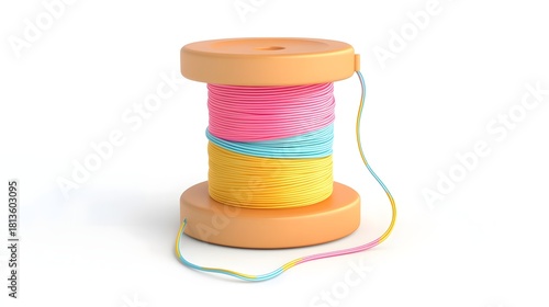 Coiled Spool of Colorful Yarn Threads on Plain White Background