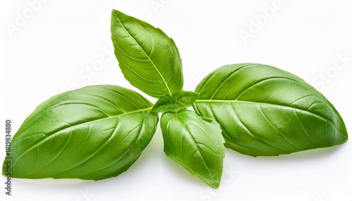 macro close up of fresh organic basil leaves rich green herb with aromatic texture culinary ingredient widely used in mediterranean cooking isolated on white