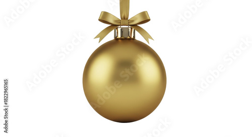 Elegant Gold Christmas Bauble with Ribbon Bow on a Transparent Background PNG image PNG file
