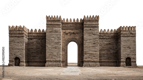 Ancient city of Nineveh gate replica background isolated on a Transparent background, PNG file.