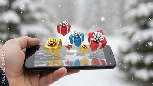 Digital Gift Reveal – AR Floating Gift Boxes in a Snowy Scene