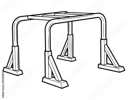 Horizontal monkey bars ladder for playground or gym hand drawn vector illustration. Black and white calisthenics equipment sketch isolated on white background.