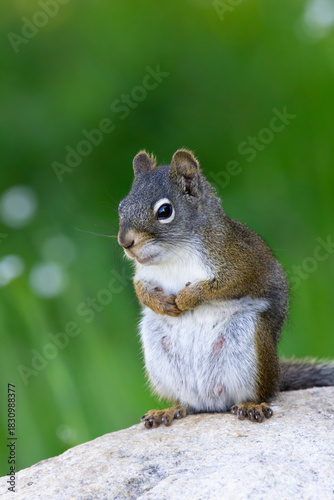 Close up of adorable squirrel with grasslands in blurred green bokeh in Colorado, United States