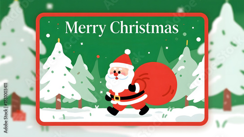 Christmas Greeting Card, Santa Claus, Snowy Landscape, Holiday Design