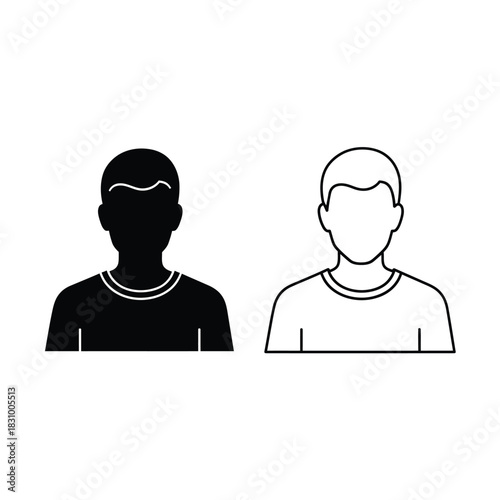 Silhouette and outline icons of a person, representing user profile, avatar, or identity in digital and human resources context.