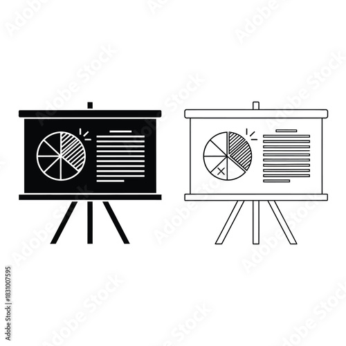 Presentation board with pie chart and text data, icon symbol for business analytics and strategy development