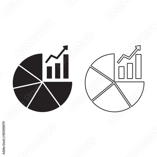 Growth chart and pie chart icons showing financial progress and data analysis with upward trending arrow