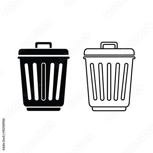 Two different trash can icons, one solid black and one outline, representing waste disposal and recycling options.