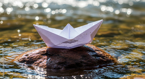 Paper Boat Navigating Calm Waters Symbolizing Peace Hope and Serenity A Metaphor for Freedom Dreams and the Pursuit of Tranquility A Floating Vessel of Simplicity
