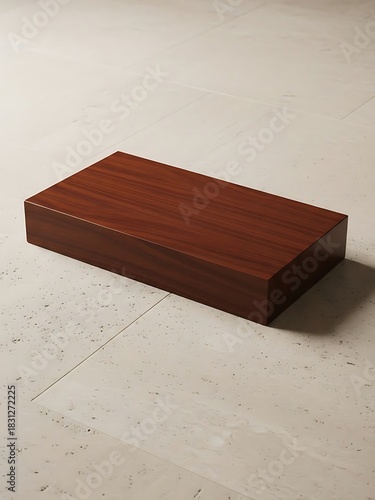 Rectangular Wooden Box on Light Beige Textured Stone Surface Still Life
