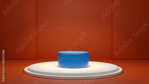 Sophisticated Product Display on Illuminated Round Platform, Clean Backdrop