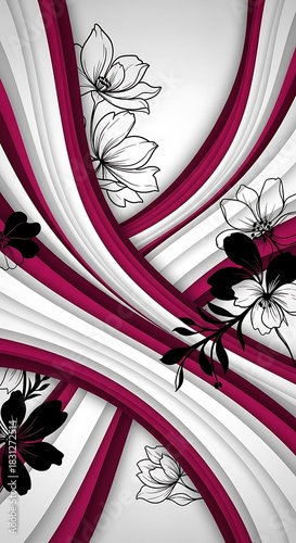 Elegant intertwining floral arrangement with waves on a vibrant surface