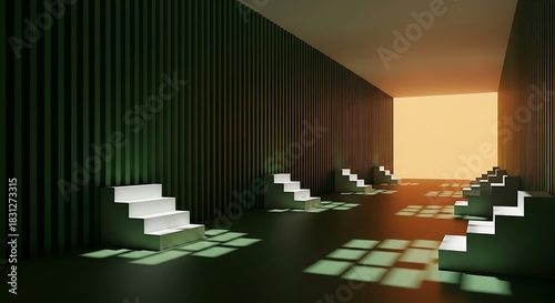 Minimalist Conceptual Staircase Design with Shadows and Light Patterns