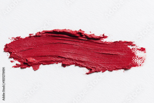 Lipstick smudge swatch top view red makeup texture cosmetic product isolated on white background showing creamy finish