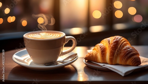 delicious start of the day aromatic coffee and buttery croissant indulgence