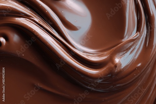 Melted liquid chocolate texture swirling gracefully in a smooth and glossy surface captured in a close-up view under natural light