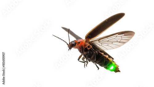 Glowing firefly PNG isolated on transparent background, bioluminescent insect with wings for nature and summer designs