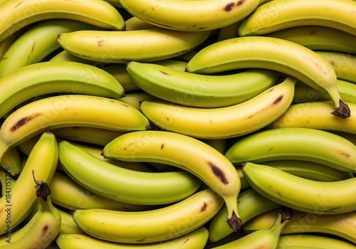 Vibrant overhead view of a dense pile of yellow and green bananas and plantains ready for market
