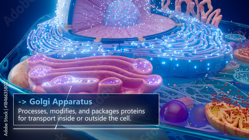 3D illustration of the Golgi apparatus processing proteins