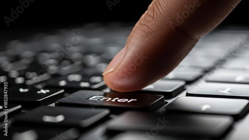 Close-up of a Finger Pressing the Enter Key on a Keyboard.
