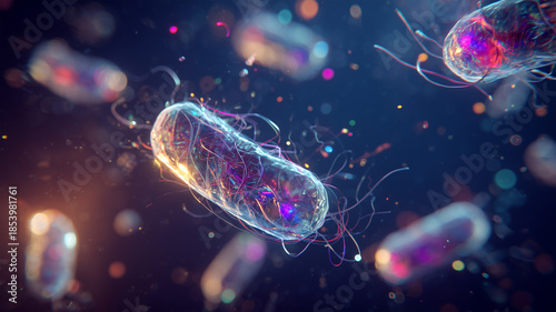 発光する桿菌が漂う微視的光景