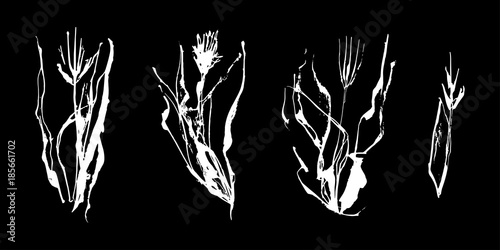 Set of hand drawn brush paint flowers. Grunge style vector. Isolated elements for modern design.