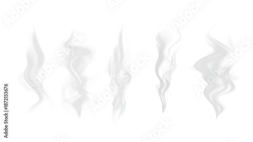 Realistic steam or smoke on hot tea, coffee, food. PNG Stock royalty free.
