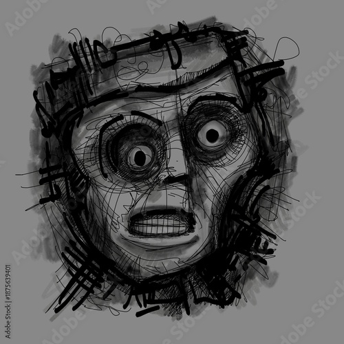 Abstract face. Abstract image for printing. Picture for modern interiors. The picture is painted by hand on a tablet.