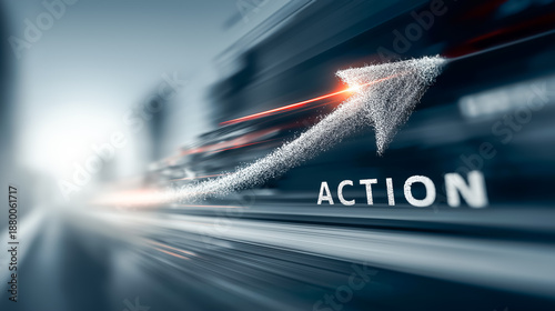 発光ラインの上向き矢印とAction文字|目標達成・推進力の背景