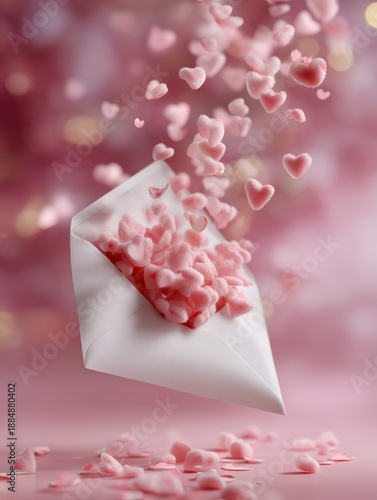 Valentine Background Featuring Pink Hearts and Open Empty Envelope