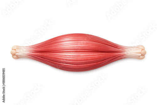 Detailed illustration of a human skeletal muscle with tendons on a black background