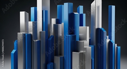 3D Abstract Sculpture of Blue and Silver Geometric Bars