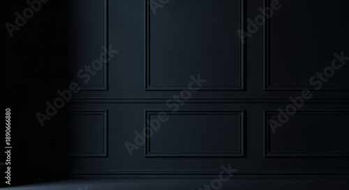 Luxury Dark Charcoal Wall Moulding with Classic Rectangular Wainscoting – Elegant Moody Interior Background Mockup