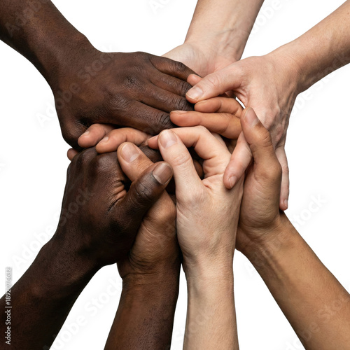 Diverse group of hands joined in unity