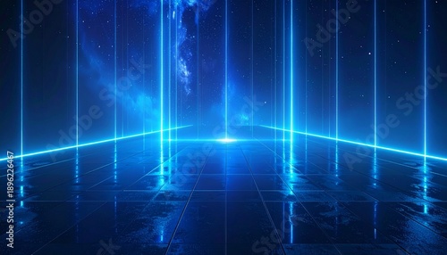 Futuristic blue neon light stage background 近未来的な青いネオンが輝くサイバーステージ デジタルイラスト