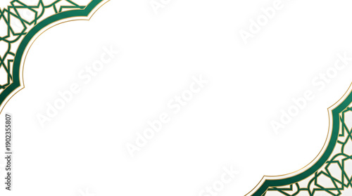 A decorative ramadan frame green and white patterned design on a transparent background
