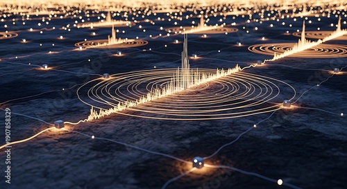 A distributed sensor network for earthquake early warning thousands of tiny devices in the ground glowing as a seismic wave passes.